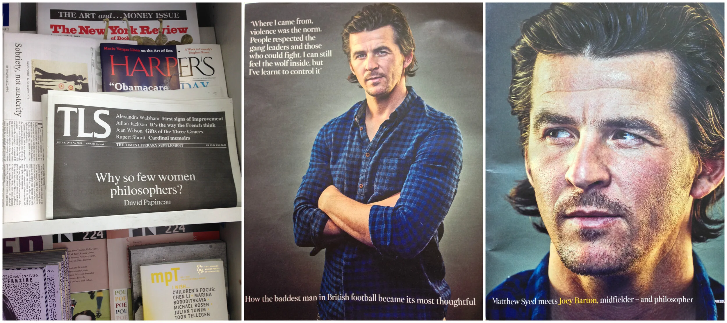 A first visit of what will be many to the LRB Bookshop threw up this eye-catching question of the front of the TLS 'Why so few women philosophers?'. Passing over the temptation to be drawn in, I left it on the rack, but the question (which annoyed me) stuck, my retort growing larger and uglier as the days passed... Until one of the weekend supplements threw up a doozy re: Joey Barton's philosophical efforts. I had to laugh. Who am I to pass judgement on whether Joey Barton is a philosopher or not? In fact, I found the piece enjoyable, pitched perfectly at a weekend readership, but if we're to apply the same bar...? Well - women philosophers? I know a few...