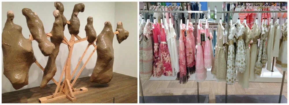 AB has taken me shopping on no less than three occasions. AB: 10, to my: one. And art and parks and the tube and the unfortunately named 'Cake Hole' cake shop on Columbia Rd and Zaha Hadid's Sackler gallery extension and a larger than life statue of Sponge Bob at Al's place of work and a disturbing Swiss take on 'social and spiritual petrification'. (Thomas Hirschhorn's Candelabra with Heads)The buzz on the London High Street is H&M's 'conscious clothes' (interesting word choice) and a celebrity 'conscious uncoupling' which I'm guessing is to distinguish it from an 'unconscious uncoupling' which I've heard can happen when men fall asleep in flagrante.